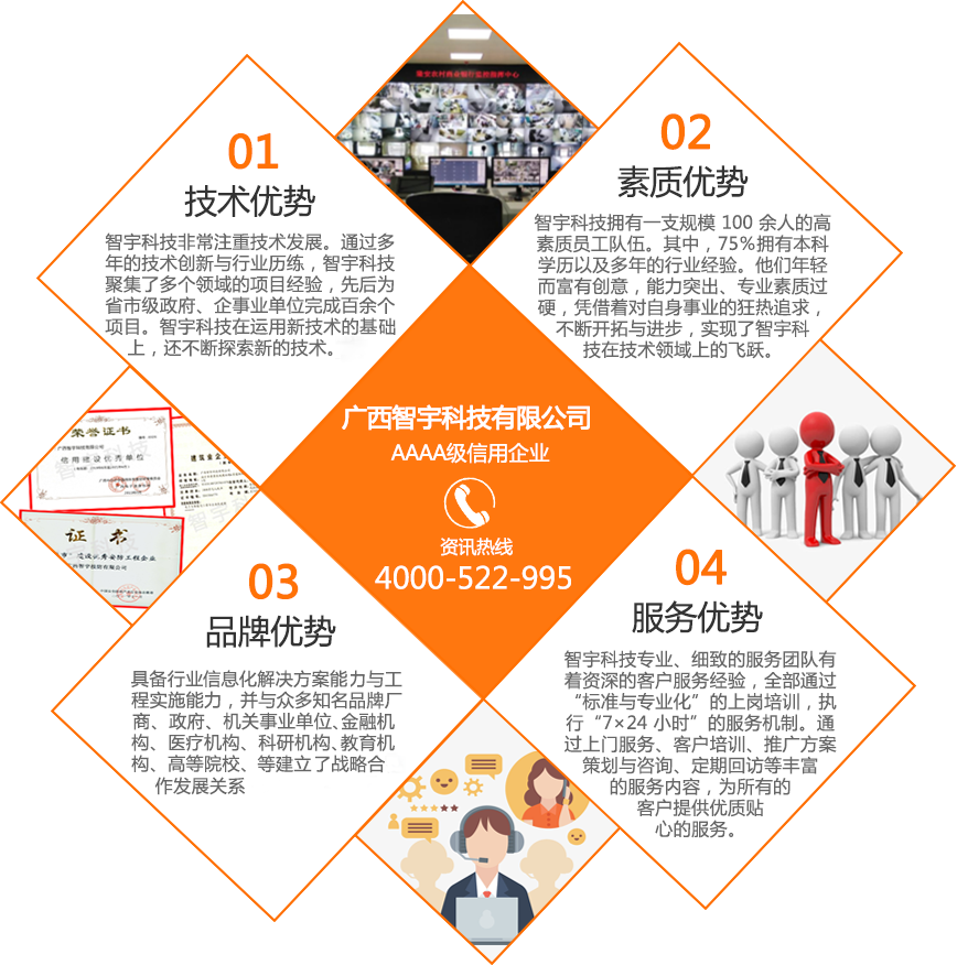 廣西智宇科技有限公司,自1995年成立以來(lái),已發(fā)展成為一家高新技術(shù)企業(yè),擁有多家分公司,遍布南寧、桂林、玉林、河池、扶綏、百色、欽州、防城港等地。憑借30年的專業(yè)經(jīng)驗(yàn)和技術(shù)儲(chǔ)備,智宇科技已成為一家行業(yè)領(lǐng)先的集團(tuán)企業(yè),致力于運(yùn)用前沿科技產(chǎn)品和技術(shù),為客戶提供高效服務(wù)。